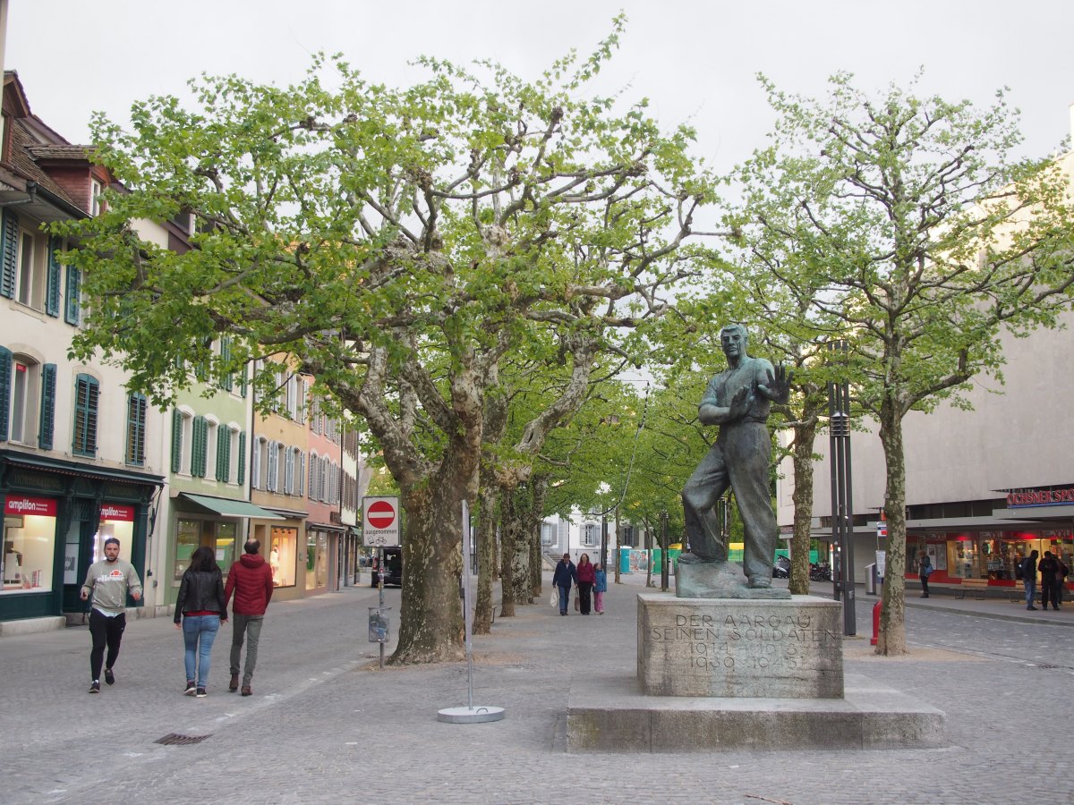 Когда ничего не знаешь про город, больше вертишь головой по сторонам и обращаешь внимания на мелкие детали. Например, на пушки с флагами швейцарии и кантона Аргау.