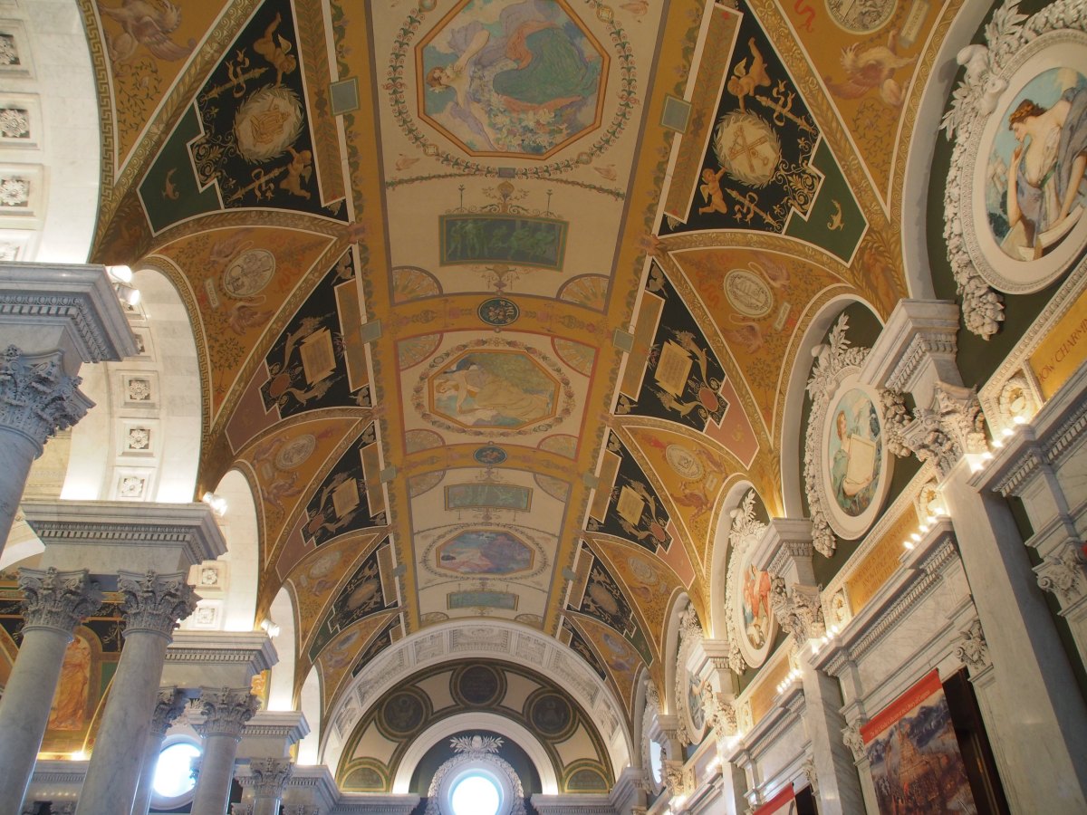 Капитолий — здание, силуэт которого знаком каждому. Классический купол, стройные ряды колонн. В свою поездку в Вашингтон мне удалось побывать там на экскурсии, и даже сходить в залы заседаний Сената и Палаты представителей. Однако гораздо больше меня впечатлили изумительные интерьеры Библиотеки Конгресса, расположенной напротив.