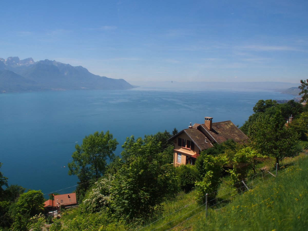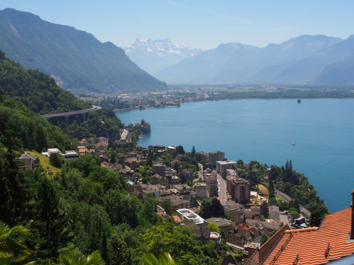 Главное — ехать в хорошую погоду, чтобы были видны горы. На фото — Женевское озеро, Монтрё и Шильонский замок.