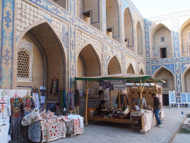 Внутри медресе сейчас тоже продают сувениры. Впрочем, не только продают, но и делают. Это сюзане — ручная вышивка.