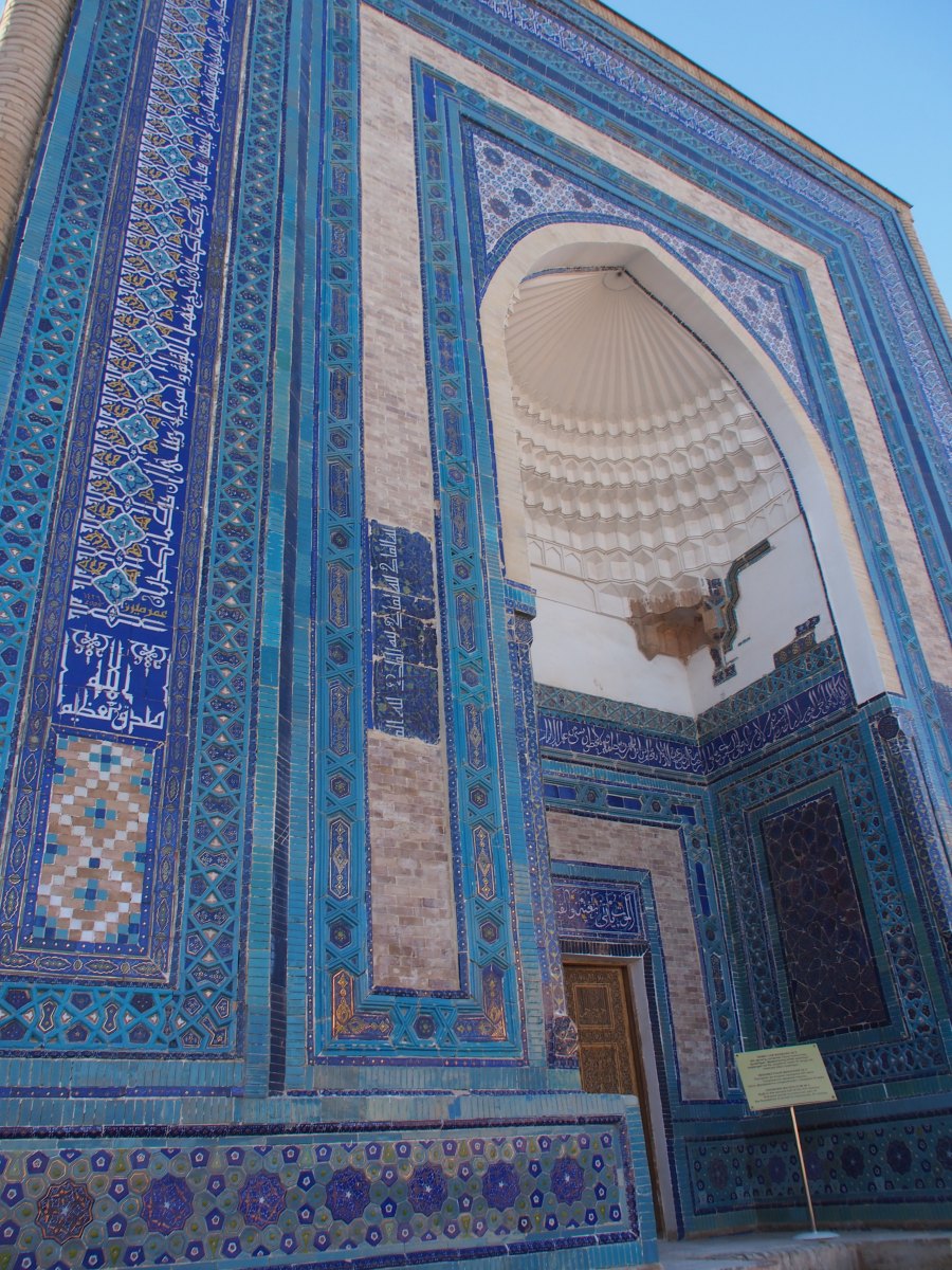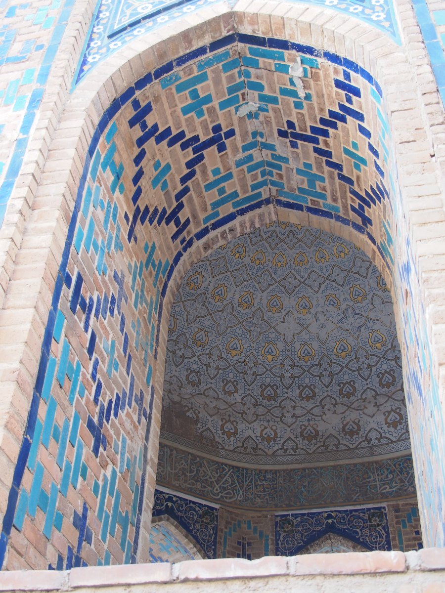 Мавзолей Ширин Бека Око. Построен Тимуром в конце XIV века для сестры. На портале указана дата её смерти — 787 год хиджры (то есть 1385).