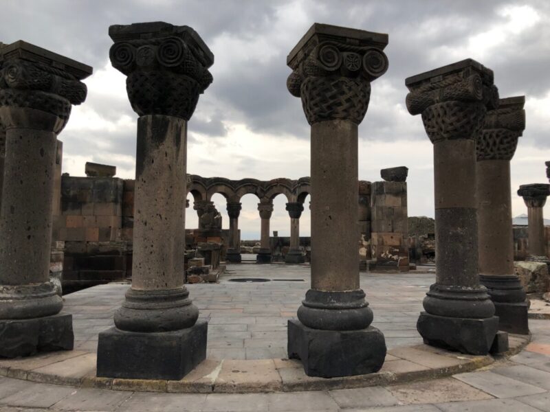И ещё один храм, который находится между Эчмиадзином и Ереваном — Звартноц. Построенный в VII веке, обвалился во время землетрясения X века, и был раскопан в начале XX.